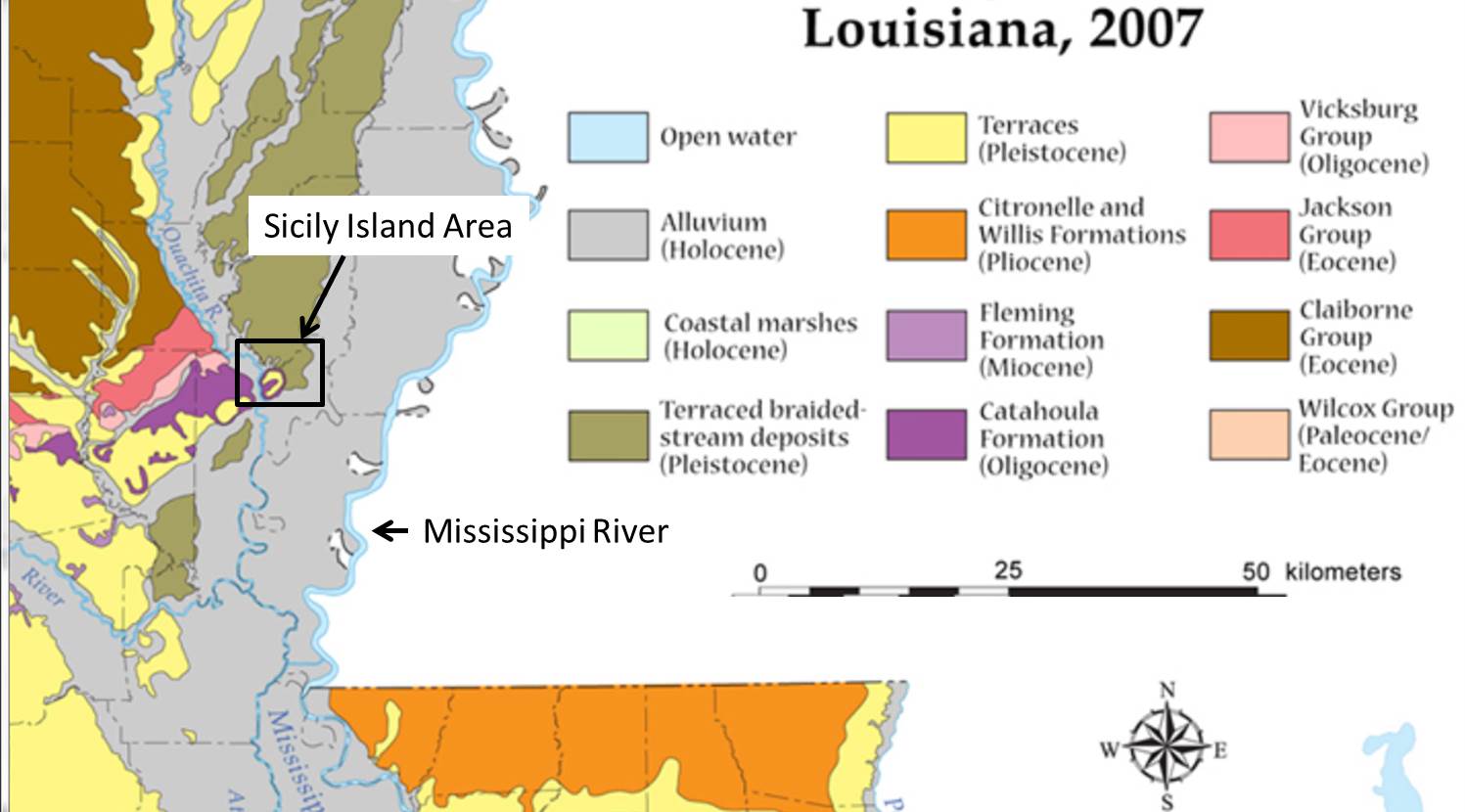 This post describes the nearest ORV park in Louisiana, Catahoula ORV park in Sicily Island, Louisiana. Sicily Island is like Manhattan, i.e., it is surrounded by rivers but is technically an island. The ORV park is located 5 miles west of town near the Ouachita River, in a well-developed drainage basin < 20 miles from the Mississippi R. The geologic map of LA shows why this park exists.