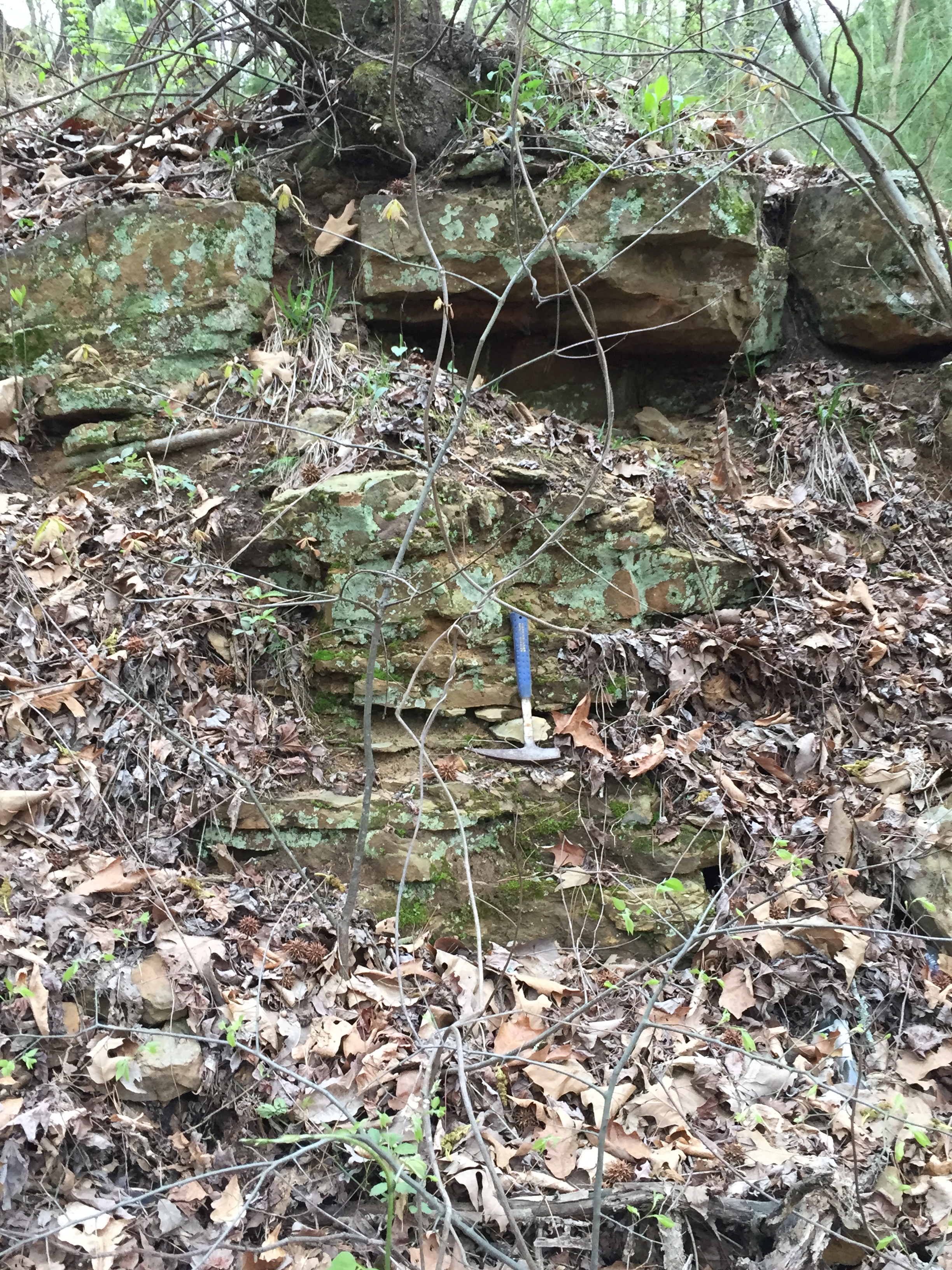 After crossing into Alabama and driving north thru Mississippian (~360-323 mya) sedimentary rocks, I arrived at Hawk Pride ORV park. I set up camp on top of the Upper Mississippian Hartsell Sandstone (Mh hereinafter) as seen in this image.