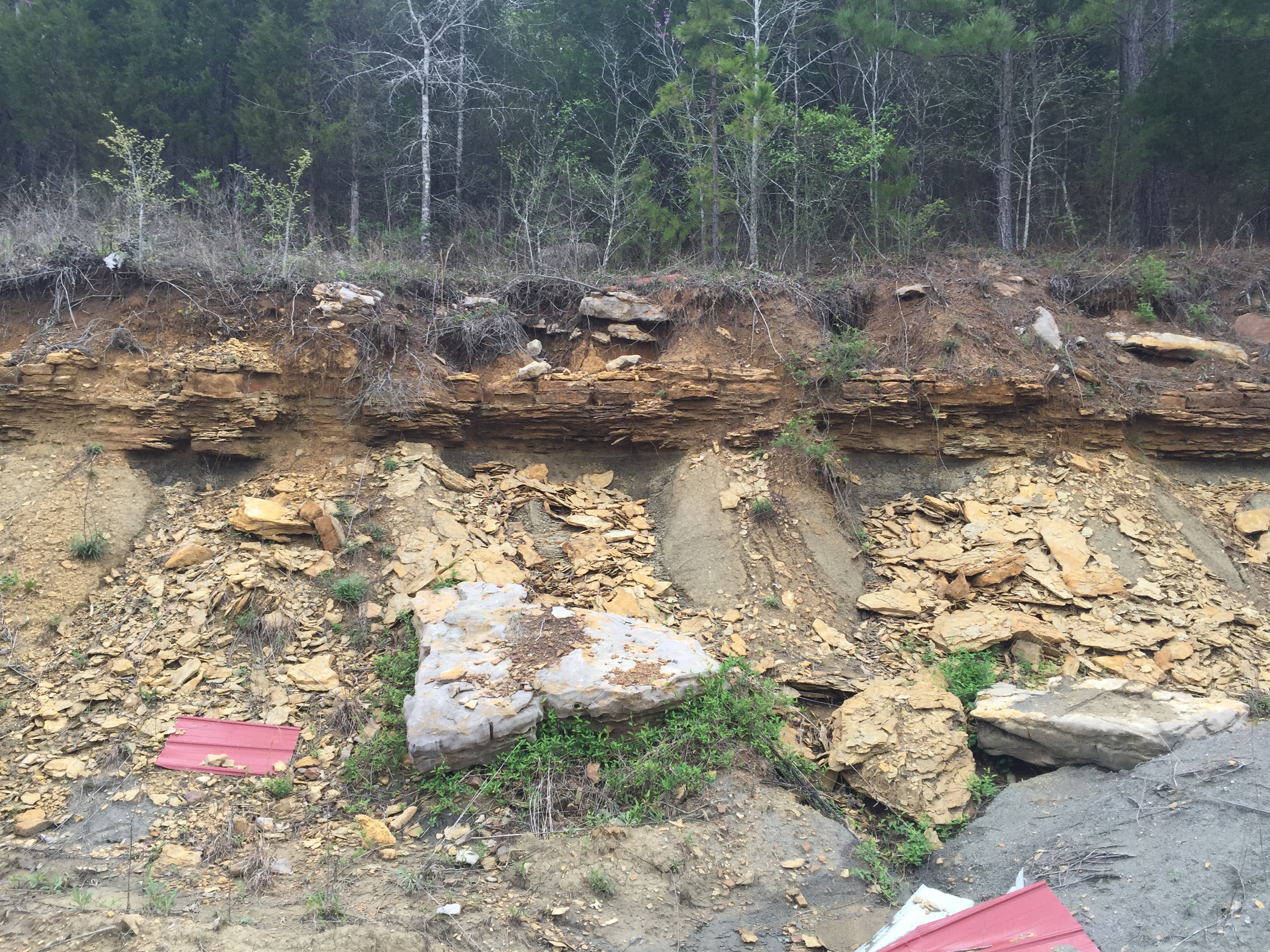 I am now at Love’s in the Paleocene Wilcox Group, but there is a deep-crustal uplift (Sabine Arch) and erosion has revealed the younger Eocene Claiborne Group sediments at Gilmer.