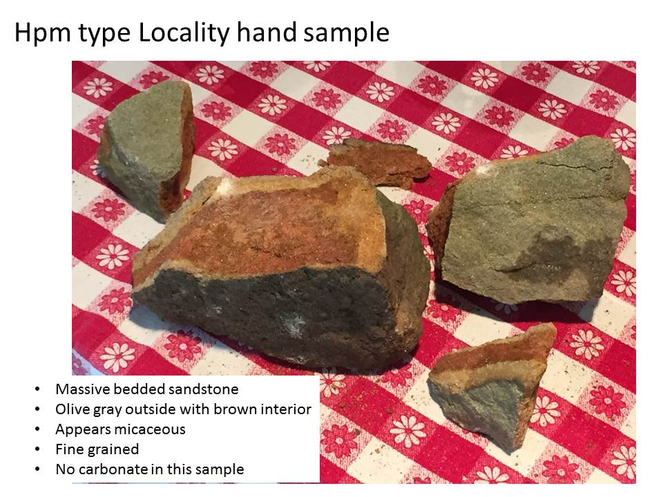 My next post will move back to the park and the field relations of this formation (Mpm) and the overlying (i.e. younger) Hartsell (Mh)…