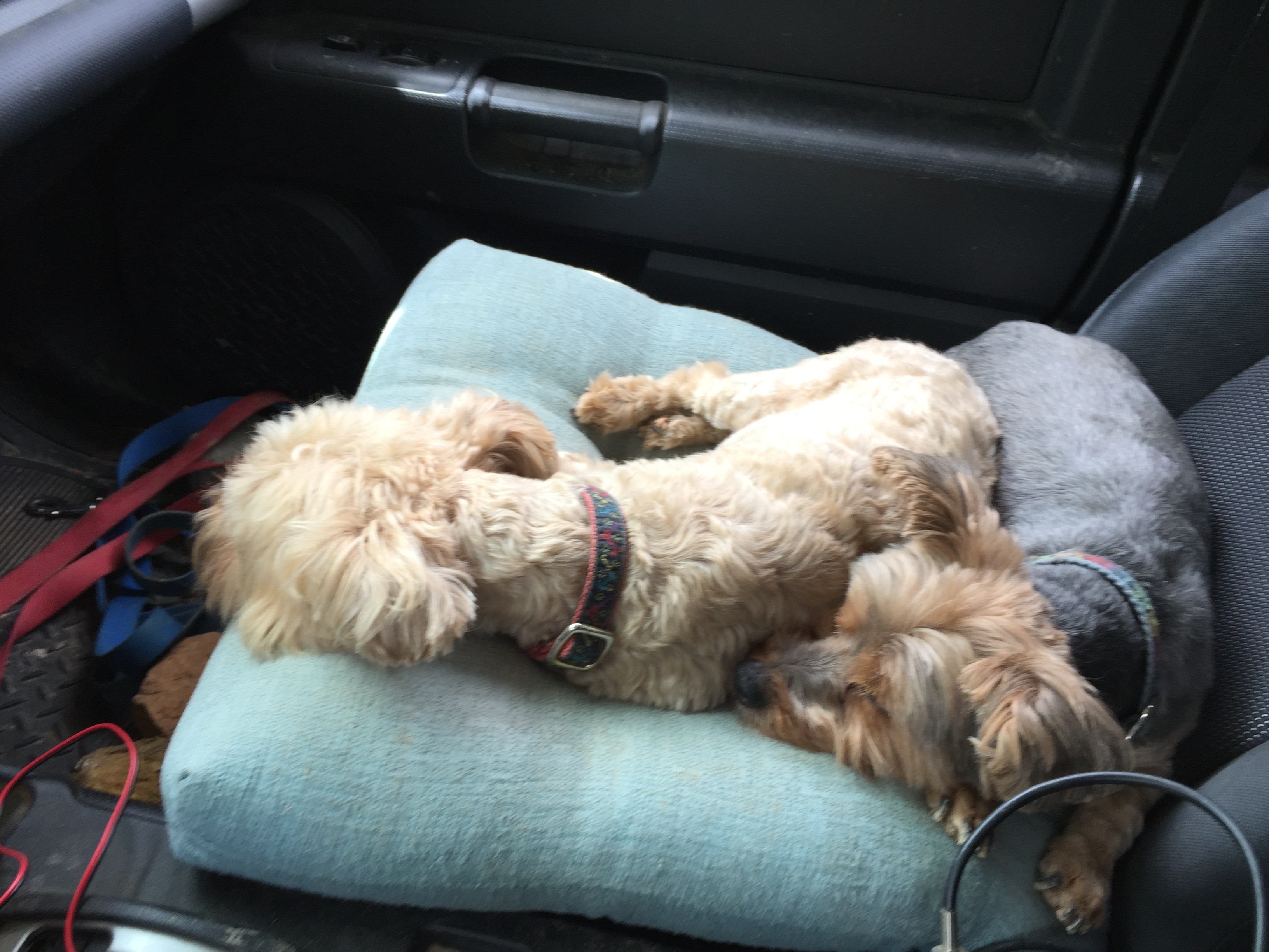 I just had to show my trail companions’ response to this wheeling experience…they only get up when thrown to the floor during downhill stretches and when I set the parking break…LOL