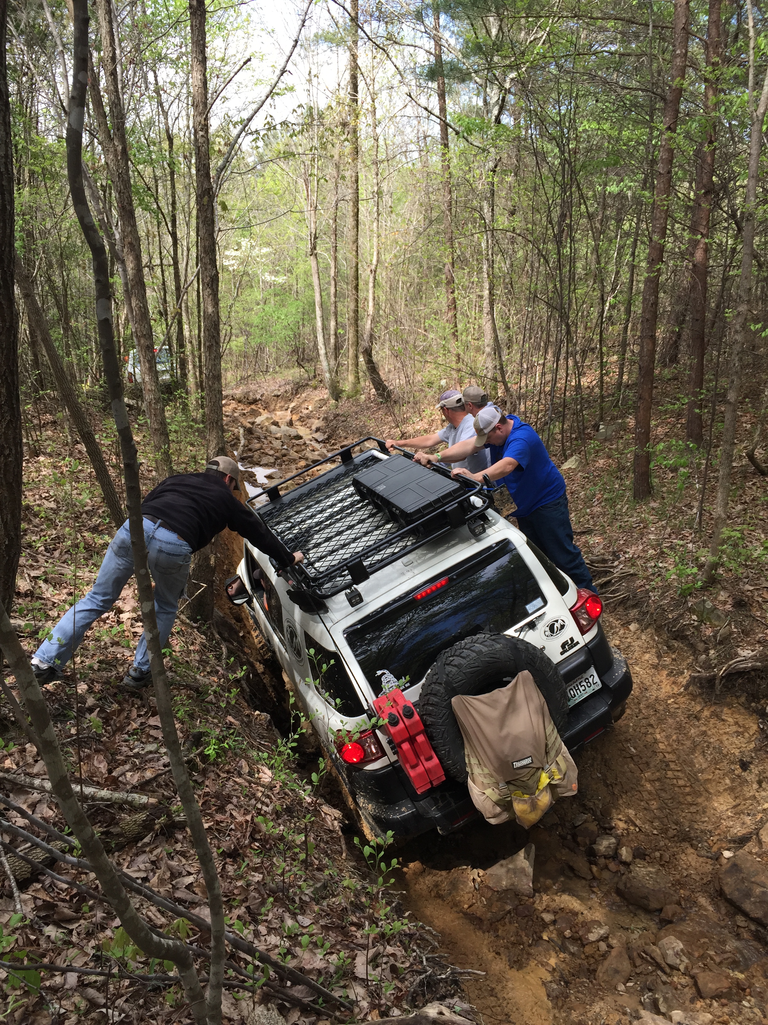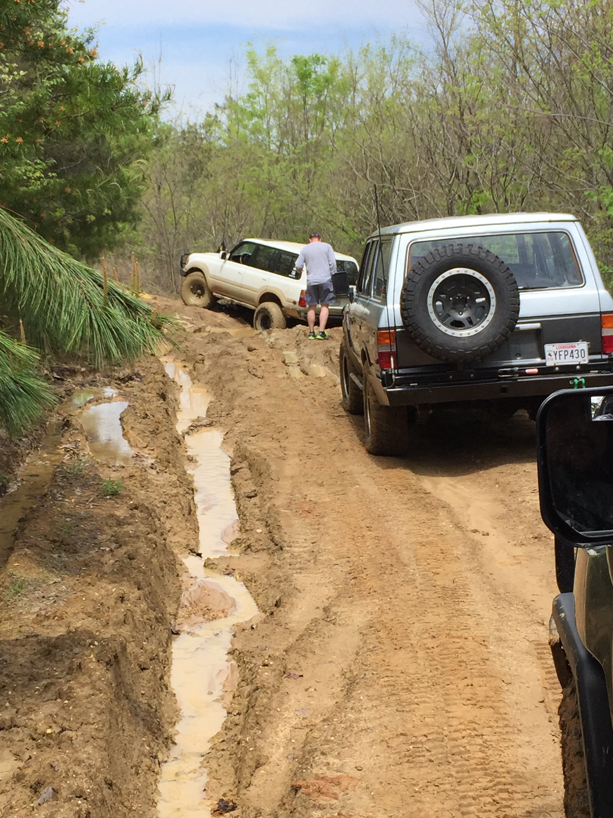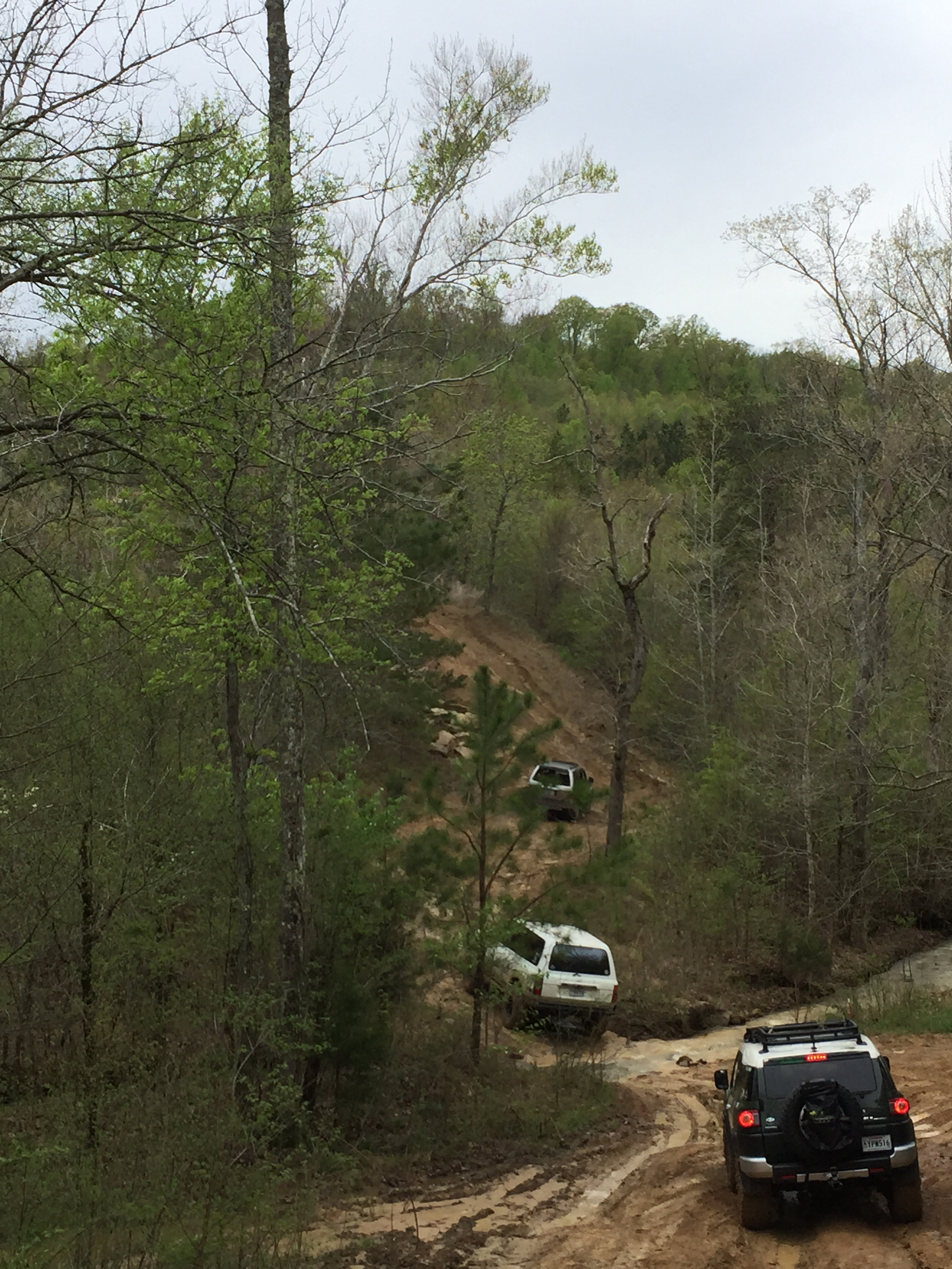 When the trail crosses a natural drainage (it rains in AL!), the crossing is very difficult, as demonstrated by our trail leader, who had to winch himself…the rest of us used tow straps or made it (50/50).