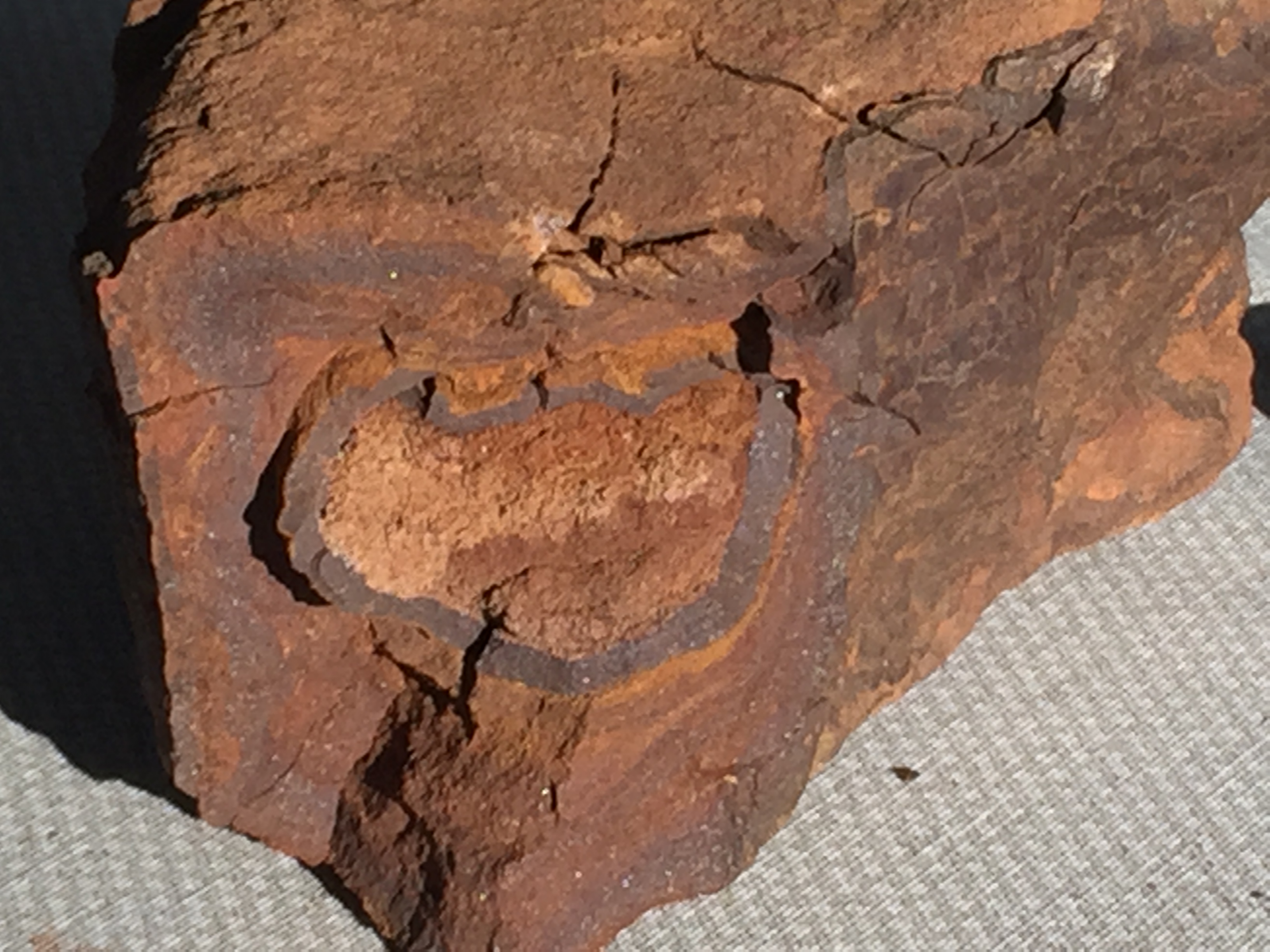Note the nodular surface that almost looks like walnuts. This is another example of how bedding layers, like the surface of this sample, are produced by chemical and not physical processes (enough about that!). When I broke this open, it almost looks like some mud from the slough behind my house…