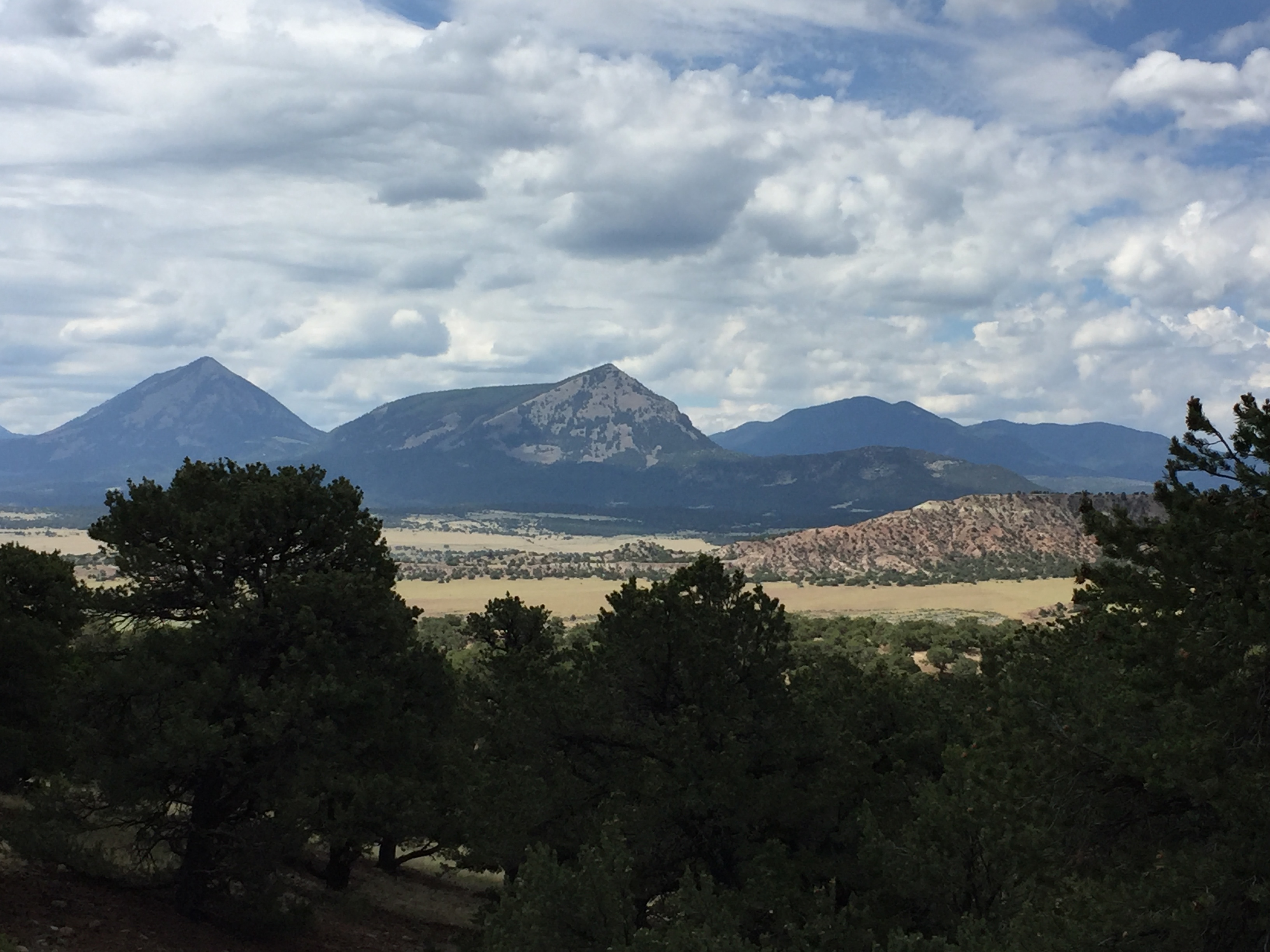 The basalt creates resistant surfaces and mesas form. The underlying rock is Mesozoic sandstones. These mesas only covered several miles along I25 as I headed north so this is not a giant field but probably an outlier from the much more extensive volcanics to the SW in NM and west in CO.