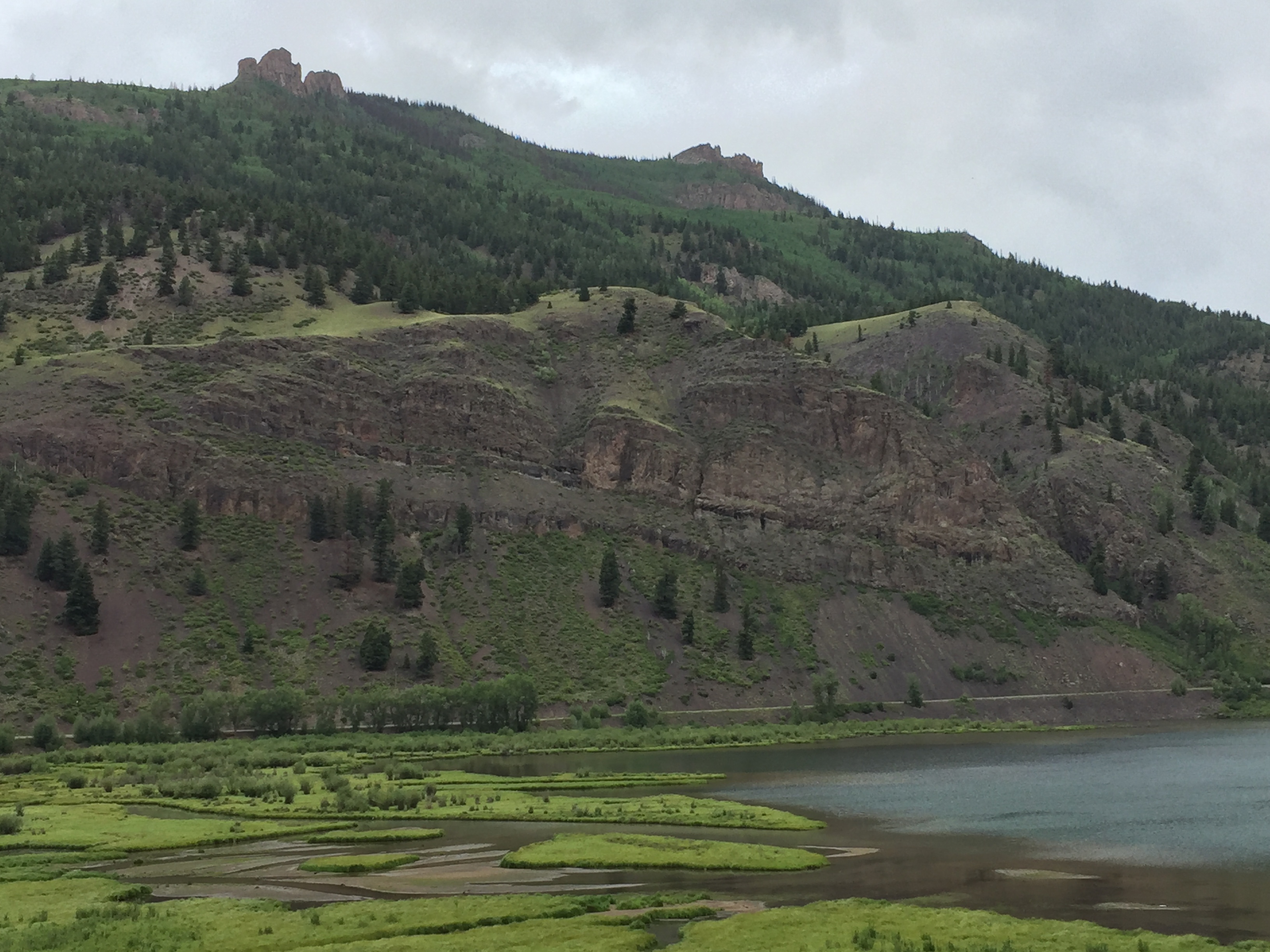 After passing thru the narrow canyon along Mill Creek (see previous post), we spent the night at Deer Lakes in Grand Mesa-Uncompahgre-Gunnison Natl Forest before ascending the lofty passes of the San Juan Mts. It stopped raining long enough to set up camp and then continued intermittently throughout the night and next day.