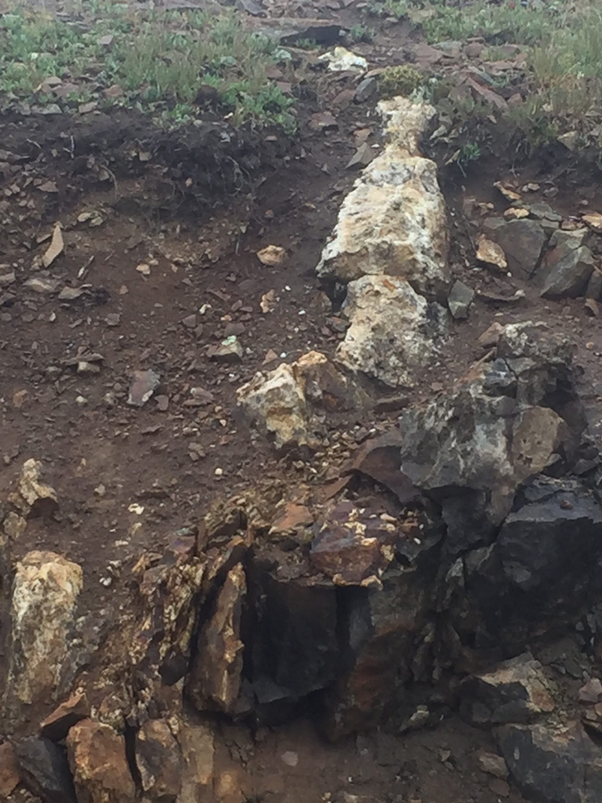 This vein is more promising from an economic geology standpoint because it appears to contain much more quartz, which is associated with the last stage of magmatic fractionation that produces fluids high in elements that don’t fit well into most silicate minerals (e.g. gold, silver, rare earths).