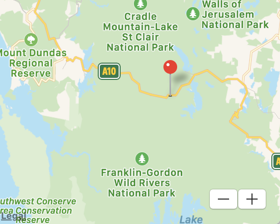 Today’s post is going to take us from Queenstown to Tasmania’s official continental divide. Most of the included photos were taken about 30 miles east of Queenstown, where the pin in Fig. 1 is located. We will be examining rocks primarily from the Tyennan Group, but not as strongly deformed and metamorphosed. We are moving east of the Paleozoic trough where most ore bodies were emplaced. The sediments consist of fine-grained (pelitic) schist and quartzite (sand-sized particles), and some conglomerate deposited between 1600 and 541 MY ago.