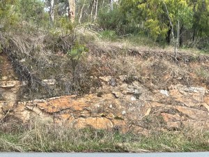 00 – Canberra: Canberra Formation (443-427 Ma): Mudstone, siltstone, minor sandstone; dacitic ignimbrite; volcaniclastic sediments, ashstone. State Circle Shale/Black Mountain Sandstone (443-427 Ma). (This is a shared post with 04 but in a different location, which is not in the guide book.)