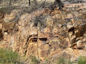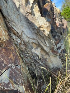 I’m taking a break to examine the rocks exposed by the recent excavation of State Circle, which obviously hadn’t occurred when the documentation I used for our geological investigation of the ACT was written. Apparently, this site has become a part of the teaching of earth sciences from elementary school through a graduate program, and I can understand why. I briefly introduced these rocks in the last post. I promised to investigate them further.