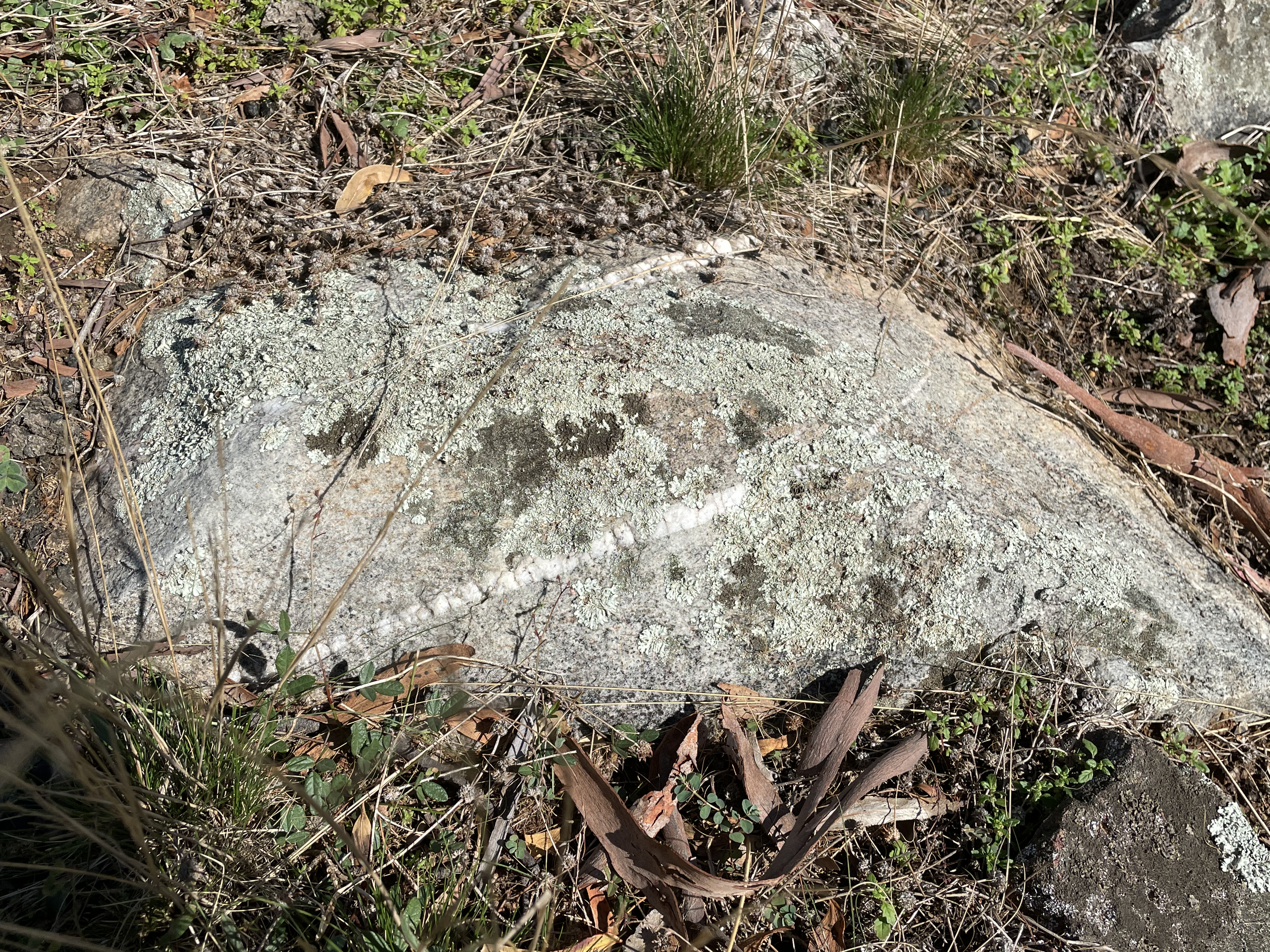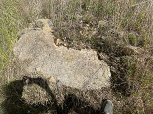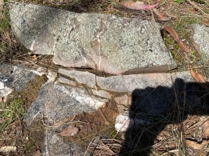 We followed a track to get as close to Lake George as possible (Fig. 6), where a small hill could be seen in the distance with outcrops visible. Most of the larger hills were covered with soil. This is a heavily eroded granitic pluton.
