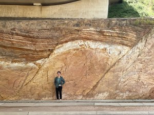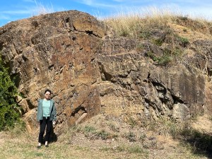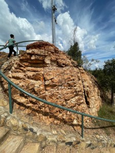 We drove to the top of Mount Ainsley, Site 16 from the regional guide (See an earlier post for details), from where we looked down on Canberra (Fig. 1), standing on top of a stack of mostly volcanic rocks extruded between 433 and 427 Ma, towards the end of the orogeny. The top of the mountain is approximately 800 feet above the base, which also reveals outcrops of the Mount Ainsley Volcanics formation. That is a thick pile of volcanic material deposited over a 6 million-year interval.