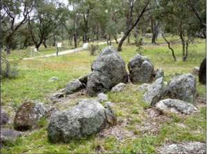 26 – War Memorial Conglomerate: Dacitic agglomerate within the lower part of the Ainslie Volcanics (428-424 Ma). The agglomerate is composed of angular clasts of greyish dacitic tuff.