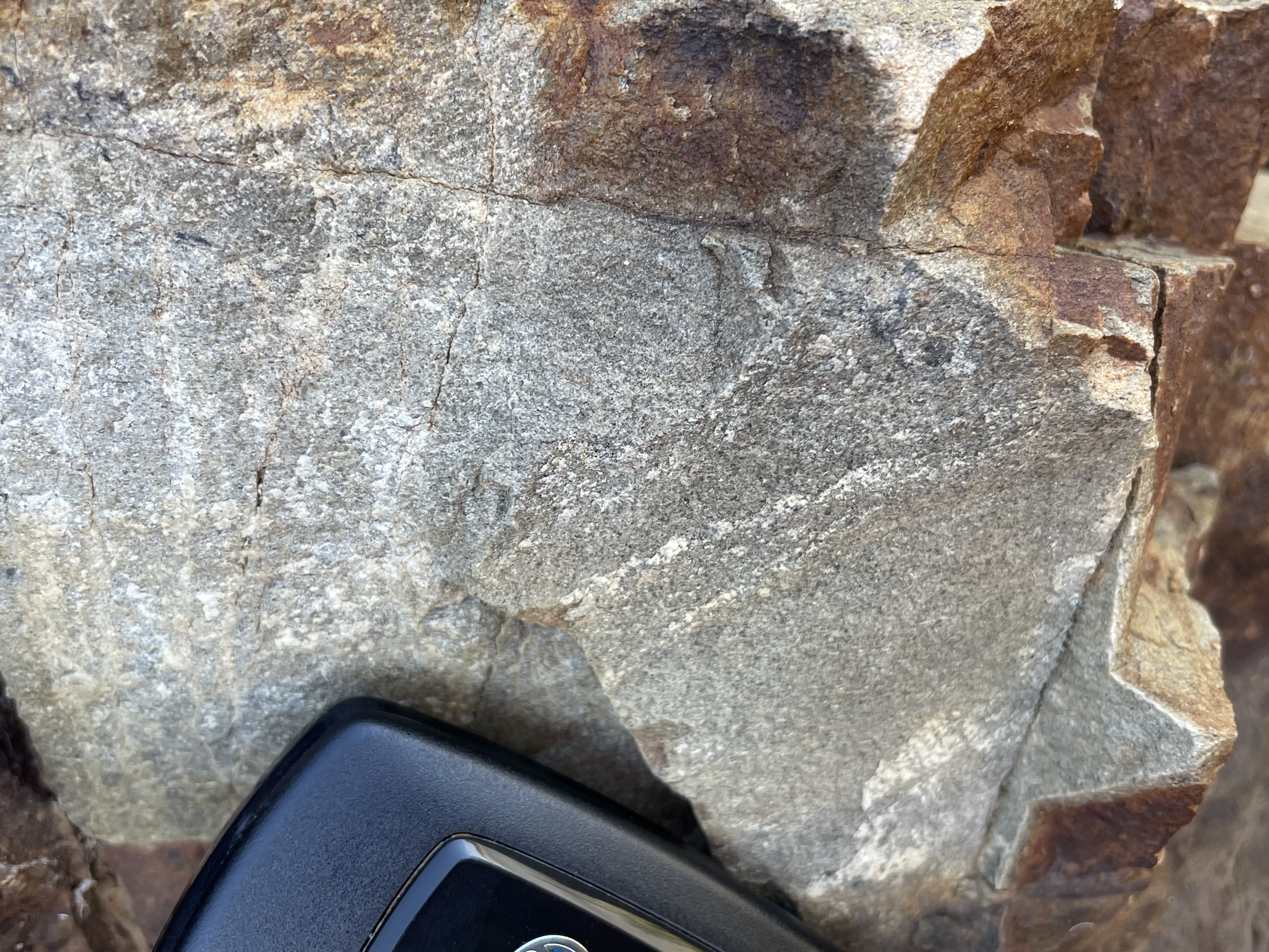 Examining the rocks up closer (Fig. 4) reveals fine textures supporting the proposed turbidite depositional environment.