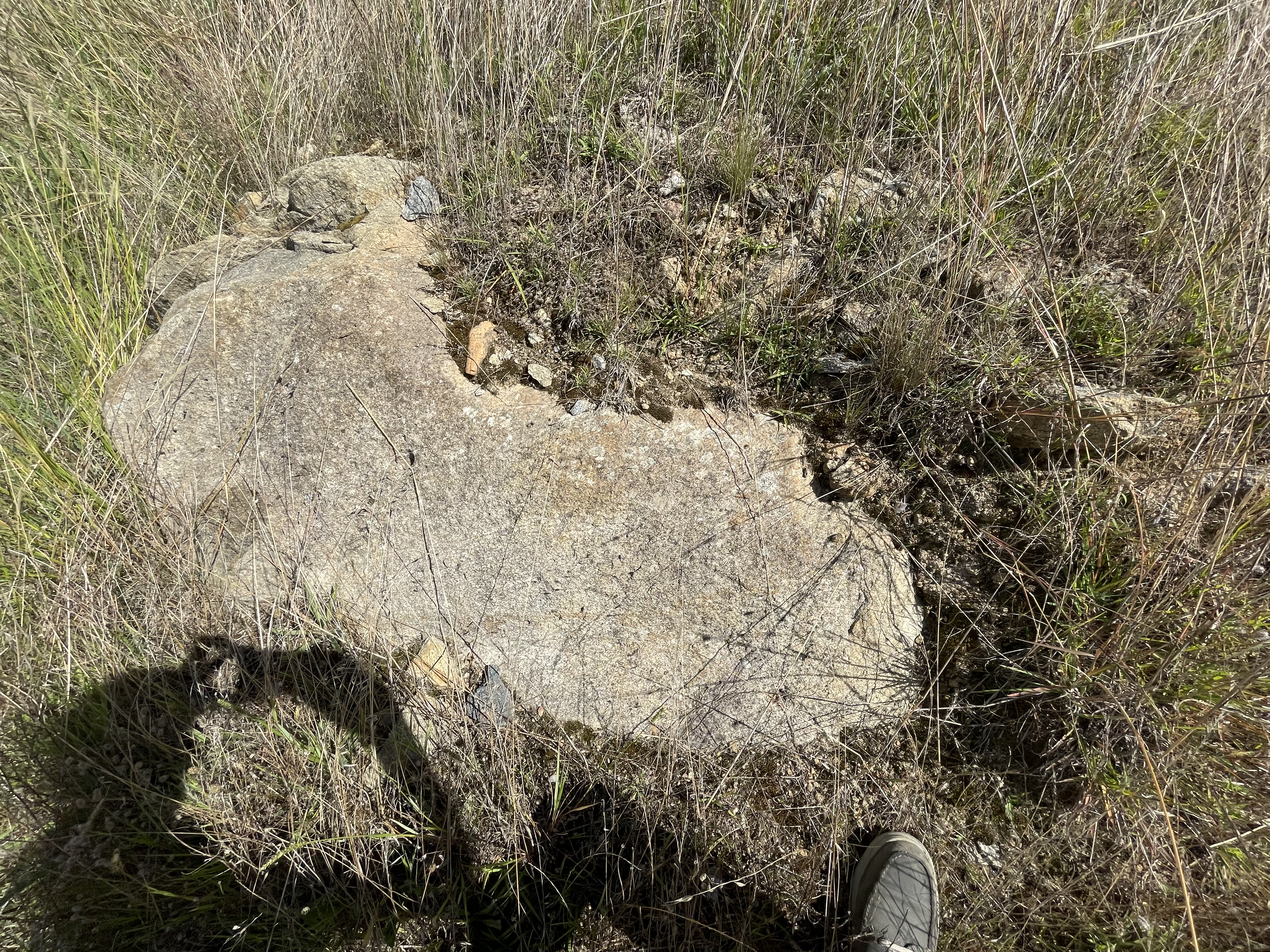 We followed a track to get as close to Lake George as possible (Fig. 6), where a small hill could be seen in the distance with outcrops visible. Most of the larger hills were covered with soil. This is a heavily eroded granitic pluton.