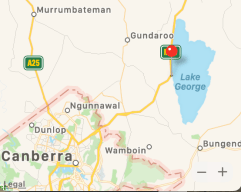 This post goes back to the beginning of the mountain building event, about 485 Ma in the past. We took a drive to Lake George, about 40 km NE of Canberra, just over the border in the state of New South Wales. Lake George is a shallow depression with no outlets and very little inflow. Thus, it is often dry and water depths are on-average about 1 m (Fig. 1).