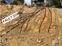 These were two identifiable (to me) folds with thrust faults. The area labeled “Fault Zone” had no recognizable bedding and tended to be fragmented. Other photos revealed vertical to overturned beds or breccia zones with no discernible structure.