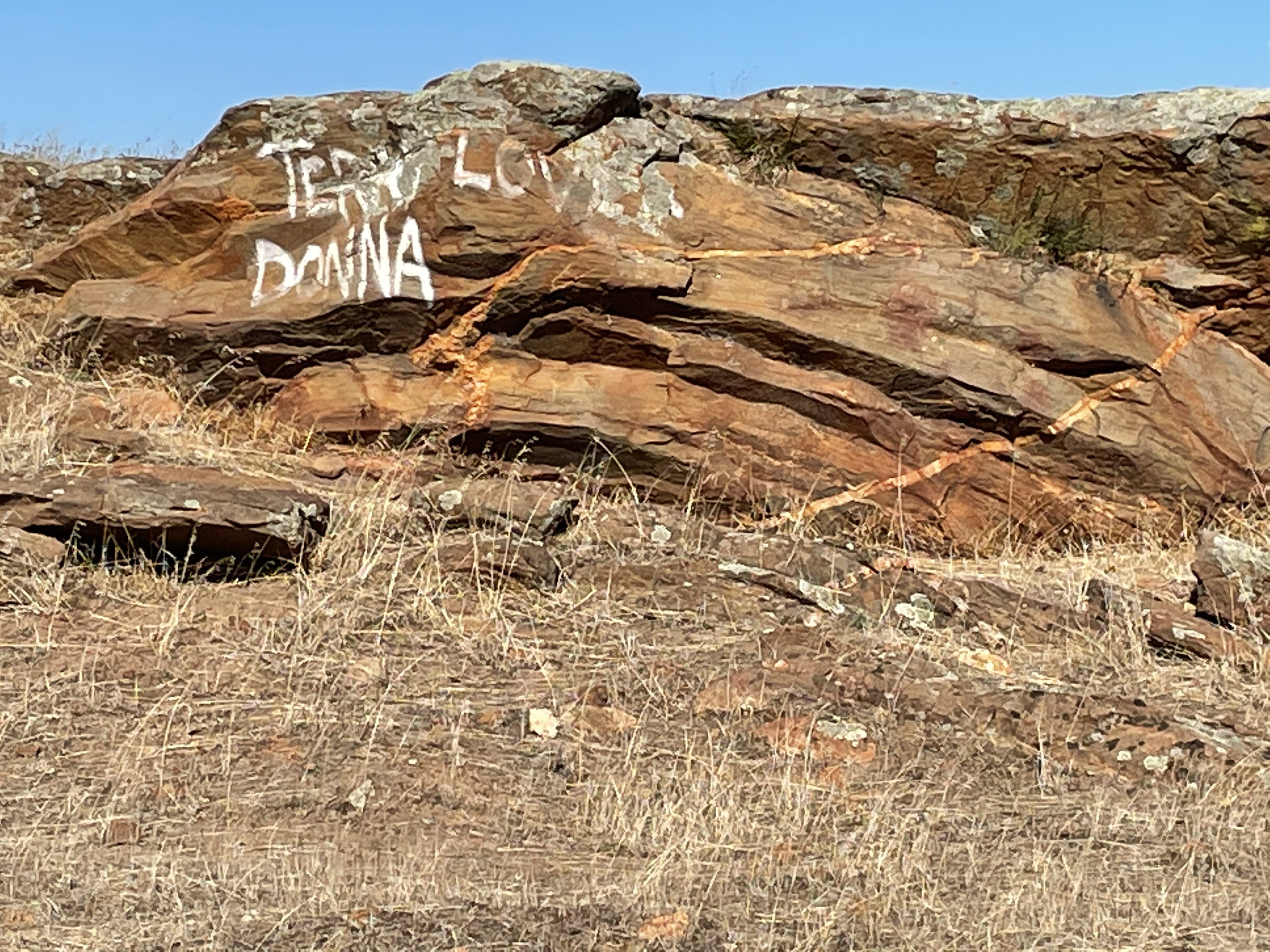 Heading WNW from the “Starting Point,” our path took us over some rolling hills capped by rounded exposures of what turned out to be alkali granite (Fig. 7), which is about 500 Ma old.
