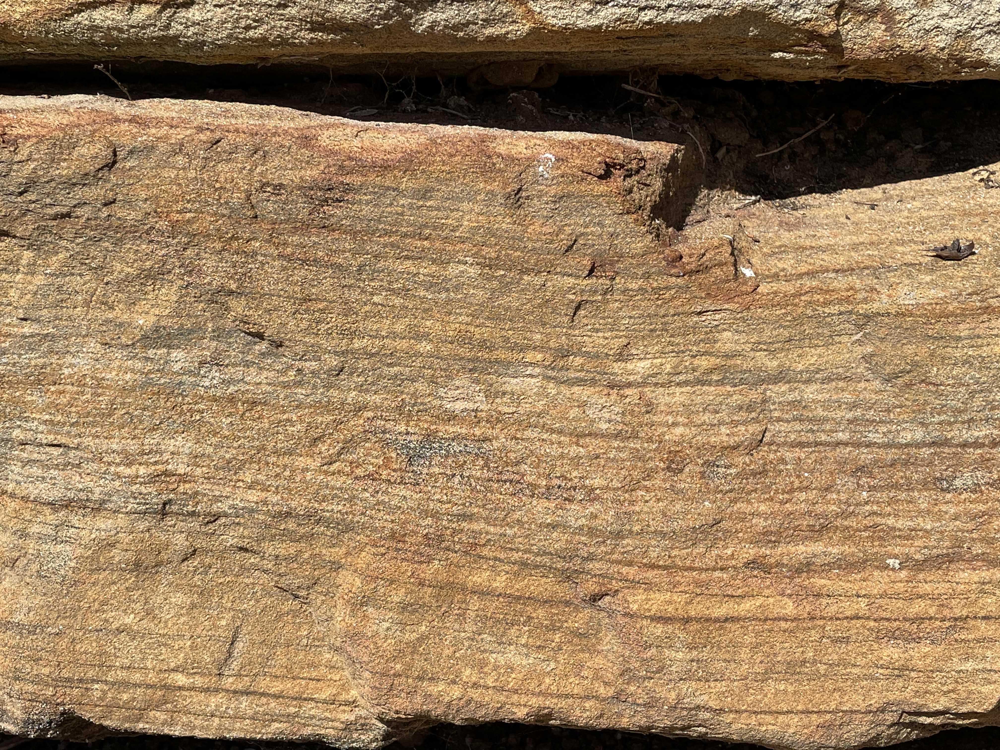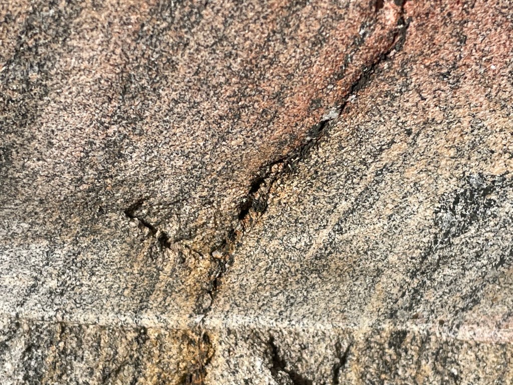 A freshly cut block (to make room for a fence) reveals foliation that suggests high-pressure metamorphism (Fig. 10).