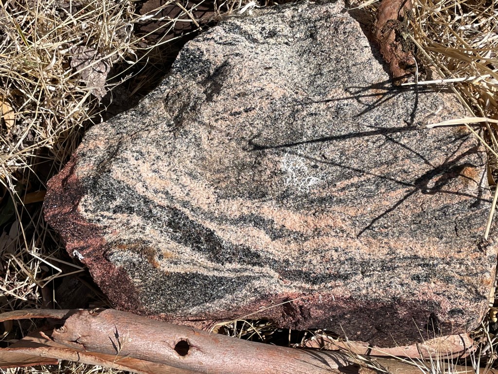 At any rate, a series of granitic intrusions occurred, pushing their way into older sedimentary rocks, about 500 million years ago. This led to more metamorphism and deformation, probably associated with the Delamerian Orogeny.