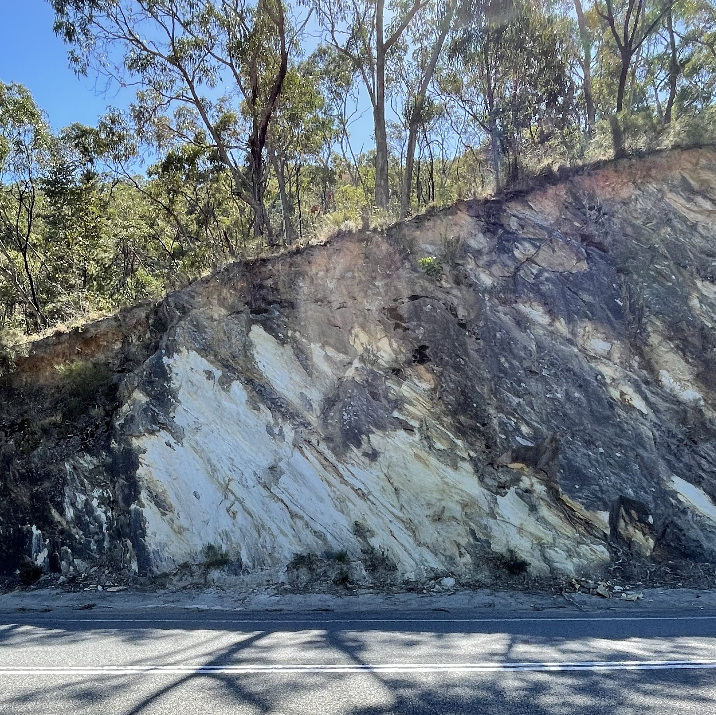 The major fault that runs the length of Kangaroo Creek Reservoir is exposed at the reservoir’s outlet (Fig. 14).