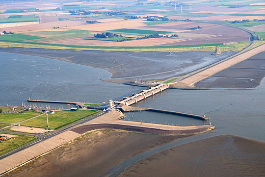 My last post explored the mud flats bordering the North Sea in northern Germany, where we found conflicting methods applied to control and protect the levee system. This post investigates more aggressive measures implemented at the mouth of the Eider River. We will briefly look at the Eidersperrwerk, a gate system designed to control both storm surge incursion up the Eider, and river outflow