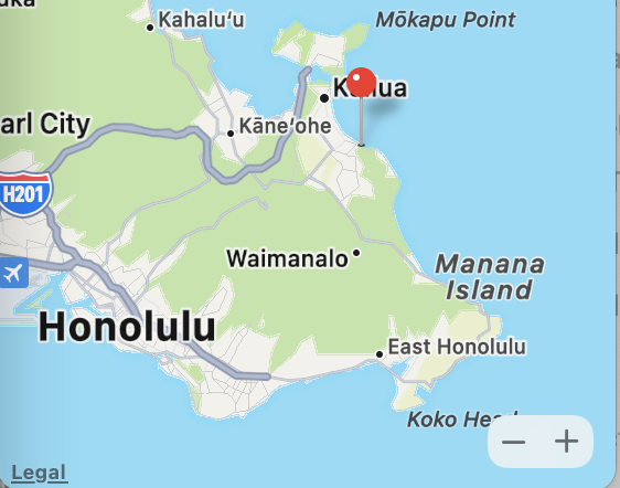 Figure 1. Map of SE peninsula, showing Kailua with the push pin.