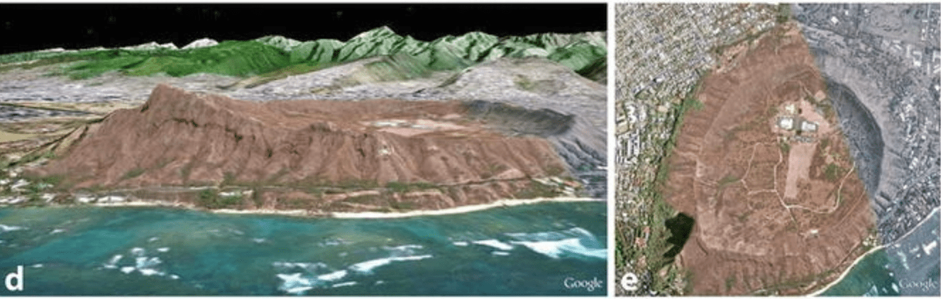 After so many posts from the volcanic island of Oahu, you wouldn’t think there was much left, but I couldn’t overlook the most famous volcano of all, although technically Diamond Head (Fig. 1) is a tuff cone like Koko Crater. This brief post is going to examine the internal structure of one of its limbs, on the seaward side.