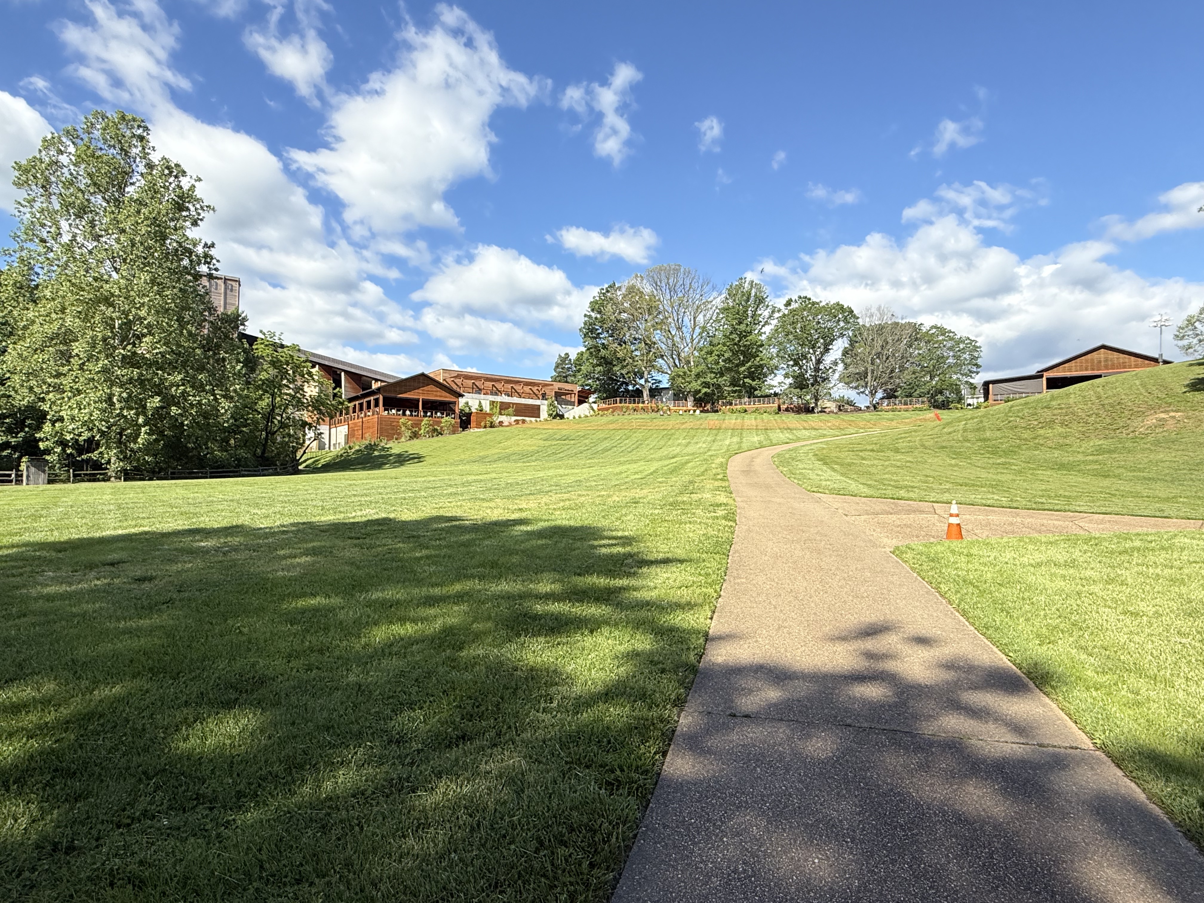 Figure 2. View of Filene Center from the SW side of our trail loop (see Fig. 1B), showing typical topographic relief at Wolf Trap park.