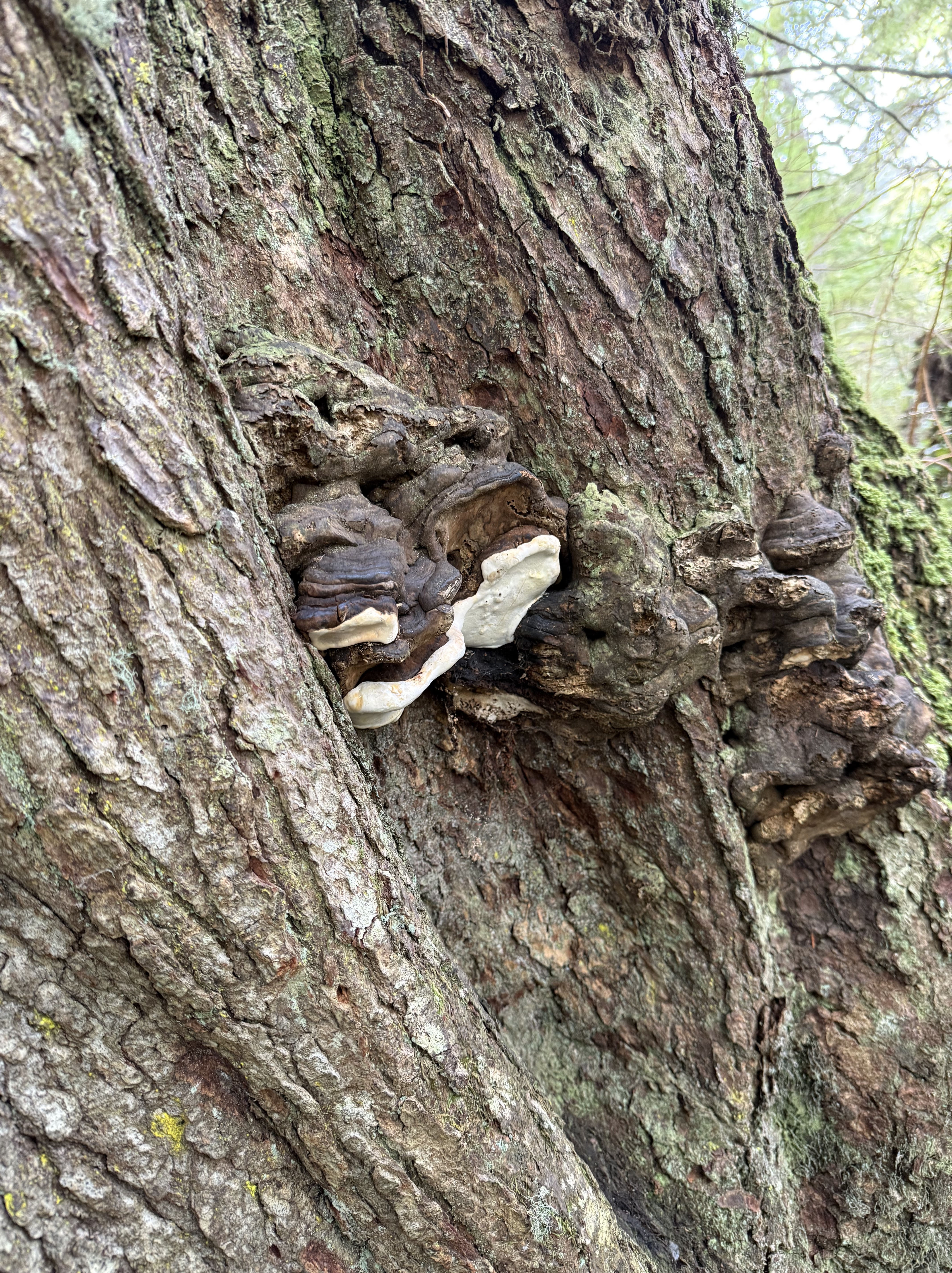 Plate 11. I don’t know if this living (it looked healthy to me) tree was stressed or not, but CoPilot thinks these are perennial bracket fungi, which favor environmentally stressed conifers. There were only a few on this tree. I noticed that this forest didn’t show nearly as many signs of decay as Quinault Rainforest, despite its exposed location.