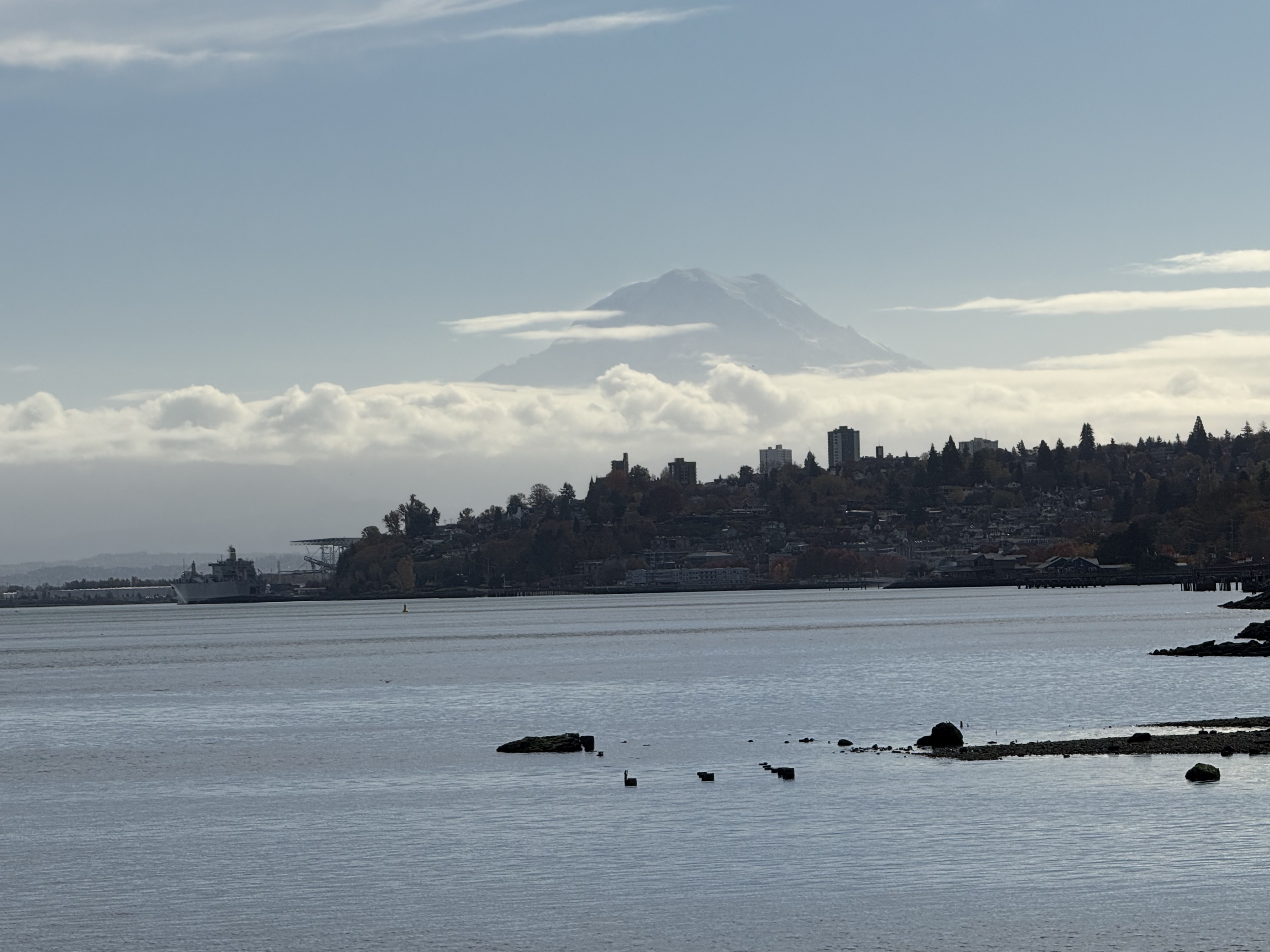 I’ve relocated to the west coast–Tacoma, Washington to be exact, and that active stratovolcano looming in the background is Mt Rainier (aka Tahoma as it’s known to the indigenous people). The pristine water body is Commencement Bay at the southern end of Puget Sound. Mt Rainier is 14410 feet high, which makes it the most topographically prominent mountain in the lower 48 states; for scale, it is 43 miles from Tacoma, yet dominates the SE horizon. How did it come to be so close to the coast and yet so tall? Before I answer that question, let’s recap the geological story of NoVA that I pieced together over the last four years.