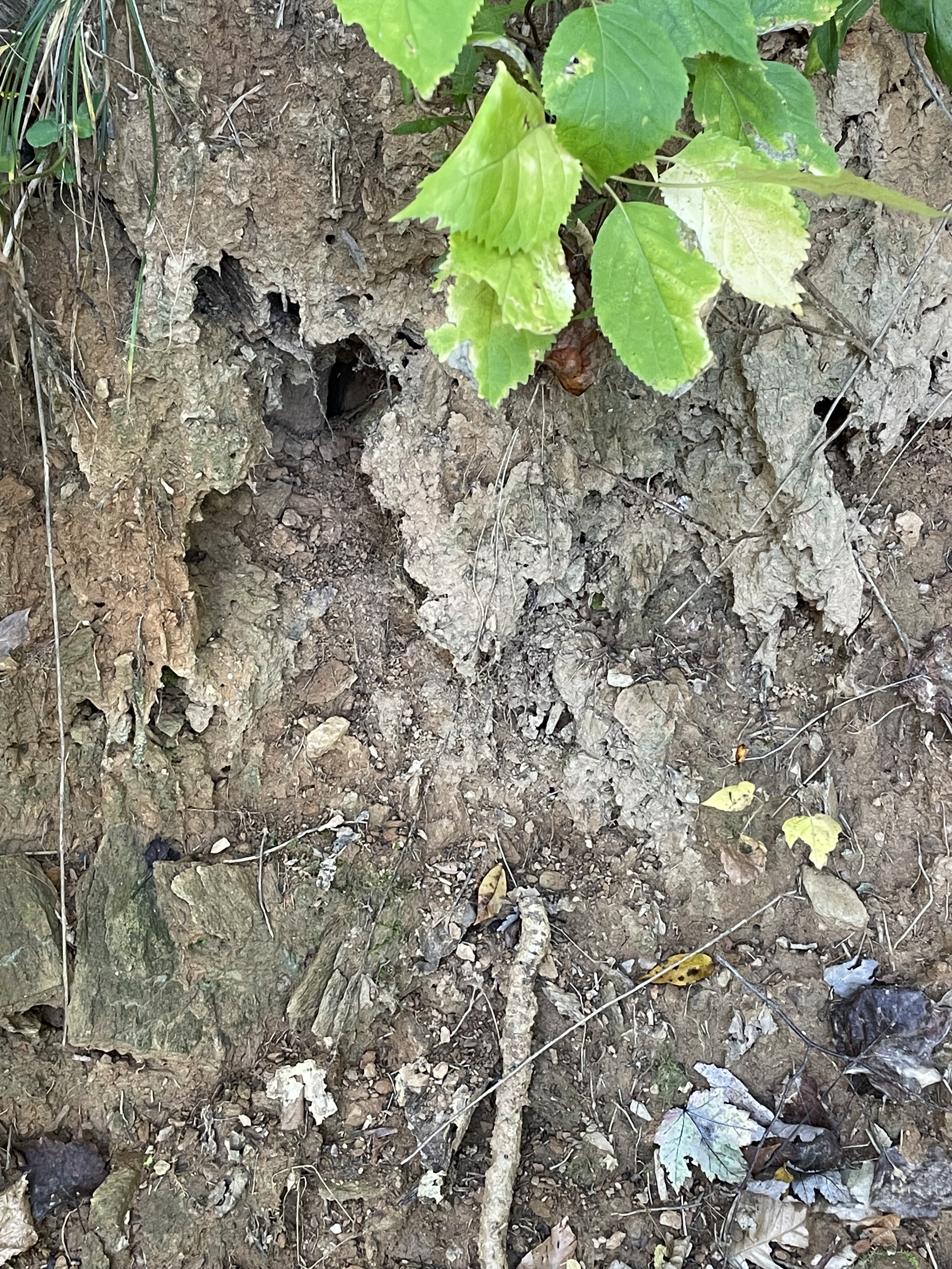 Figure 6. This photo, taken less than 20 feet from Fig. 5, shows the end result of the microscopic weathering of schist. It is turning into mud as the trapped water is released and the aluminosilicates (clays) break down into smaller and smaller grains. This soil is rich in aluminum and is mined for that element in tropical areas where plentiful rainfall maintains the conveyer belt that recycles mud into mud.